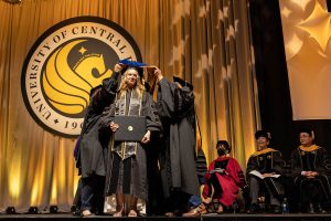 Last week, Segarra — a first-generation student — reached another milestone in her educational journey as she crossed the commencement stage to accept a doctorate in industrial engineering, at the same time making history as the recipient of the 400,000th degree UCF has awarded since classes first began in 1968. The total degrees conferred include more than 63,000 master’s degrees and over 7,000 doctoral degrees.